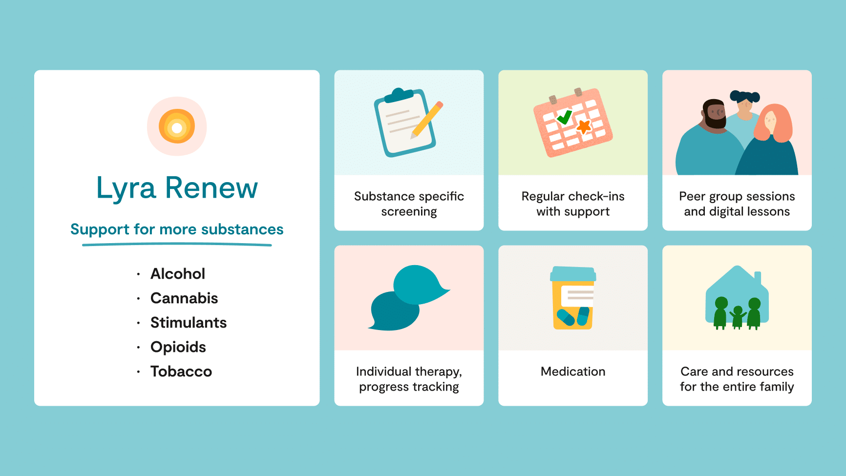 To address this challenge, we launched Lyra’s Renew program in 2021, which has already helped many people struggling with alcohol addiction and mental health issues. Building on that success and impact, I’m thrilled to announce that we’re expanding Lyra’s Renew program to offer comprehensive substance use recovery for those struggling with cannabis, stimulants, opioids, and nicotine, along with alcohol.