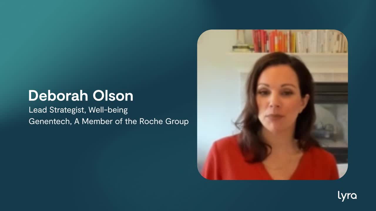 Genentech’s benefits team knew it needed a better way to support their people’s mental health—with a frictionless path to effective care, and transparency to evaluate whether the program actually worked. Partnering with Lyra not only made these goals achievable—it was simply “the right thing to do,” said Olson. Since launching Lyra in late 2018, the company has also implemented Lyra’s Clinical Leave Evaluations. “Lyra is saving lives—it’s saving families,” said Olson. “It’s helping us to focus and function in ways we wouldn’t have before.”