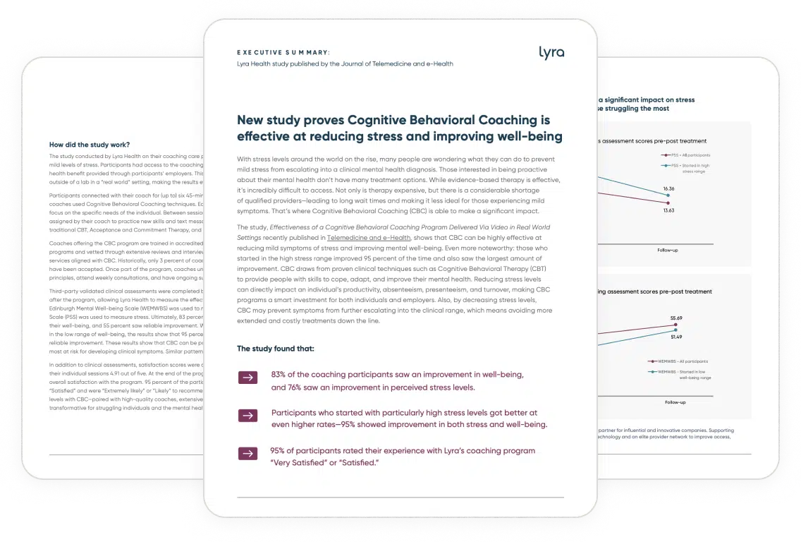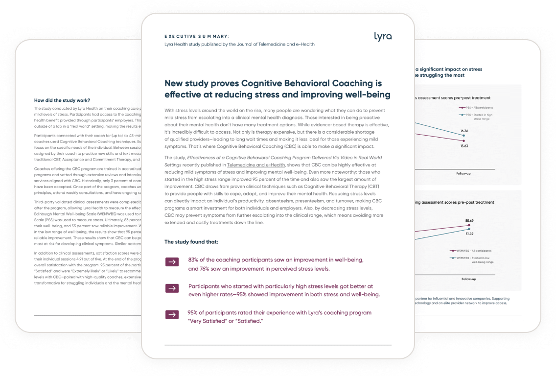 The study, Effectiveness of a Cognitive Behavioral Coaching Program Delivered Via Video in Real World Settings published in the journal Telemedicine and e-Health, shows that Cognitive Behavior Coaching (CBC) can be highly effective at reducing mild symptoms of stress and improving mental well-being.