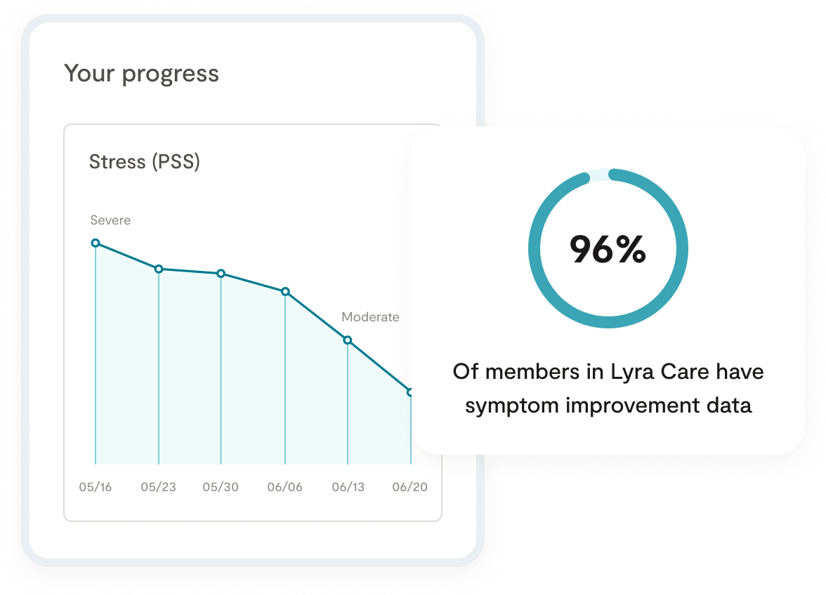 Members complete assessments before, during, and at the completion of care to give providers insight into treatment progress and offer population insights about how Lyra works for your entire workforce.