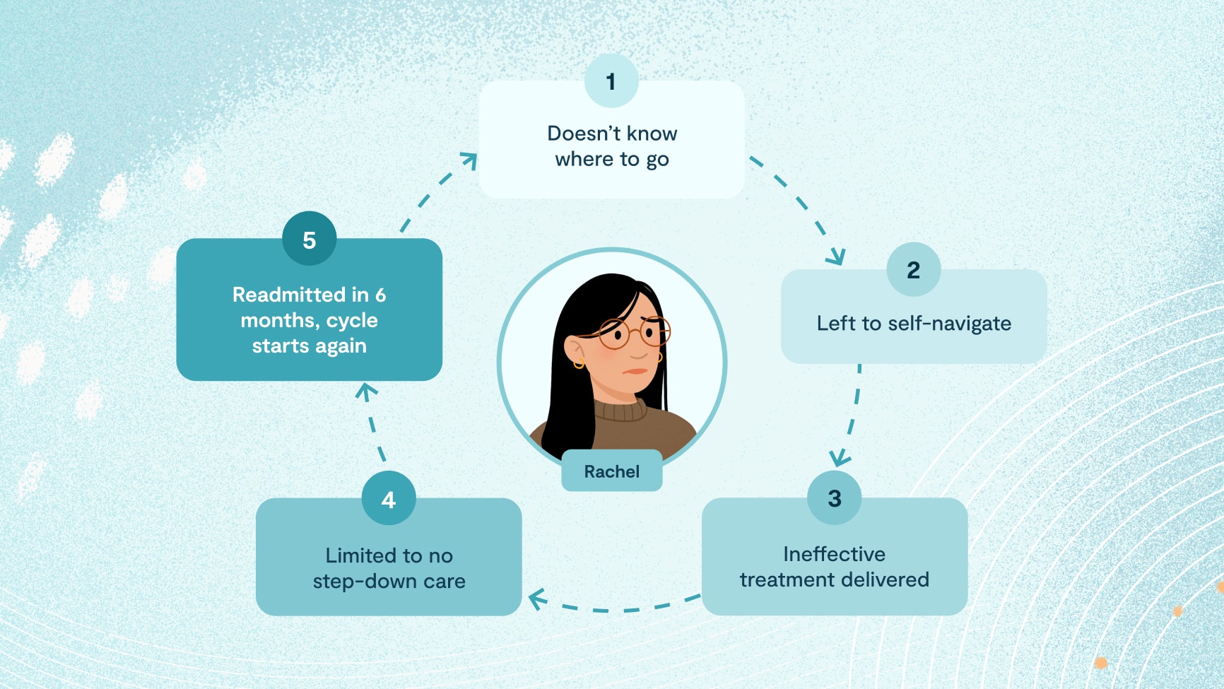 It always pains me to see the struggle my patients and their caregivers endure as they try to get into a program. It’s a challenging ecosystem where most programs aren’t accepting new patients. The programs that are accepting new patients frequently are out of network and prohibitively expensive. Worse, care isn’t coordinated and individuals don’t get the support they need to truly achieve wellness in the long term. Furthermore, many facilities don’t deliver evidence-based treatments or assist in transitioning into step-down levels of care that are imperative for long-term recovery. Unsurprisingly, roughly 1 in 3 patients end up readmitted to a facility within a year.